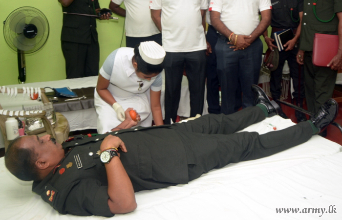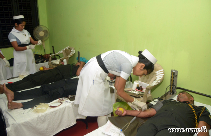 More than 76 Officers and Other Ranks of the 22 Division headquarters in Trincomalee, voluntarily donated their blood for the use of patients in all hospitals in the district during a blood donation programme, organized at the Lanka IOC Terminal China Bay on Wednesday (29) with the support of the troops of the 22 Division.