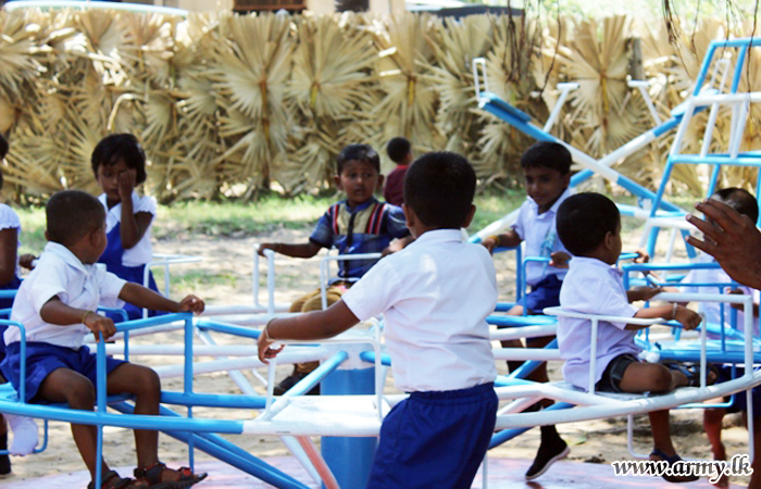 In another move of reconciliation and ethnic harmony, troops of the 593 Brigade under the 59 Division renovated a pre-school and its children's park and handed it over to the school authority on Tuesday (4) at Chemmali GN Division in Mullaittivu District.