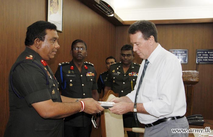 The Australian High Commissioner in Sri Lanka, HE Mr Bryce Hutchesson paid a courtesy call on Major General Darshana Hettiarrachchi, Commander, Security Forces - Jaffna, on Friday (7) during a tour to the North.