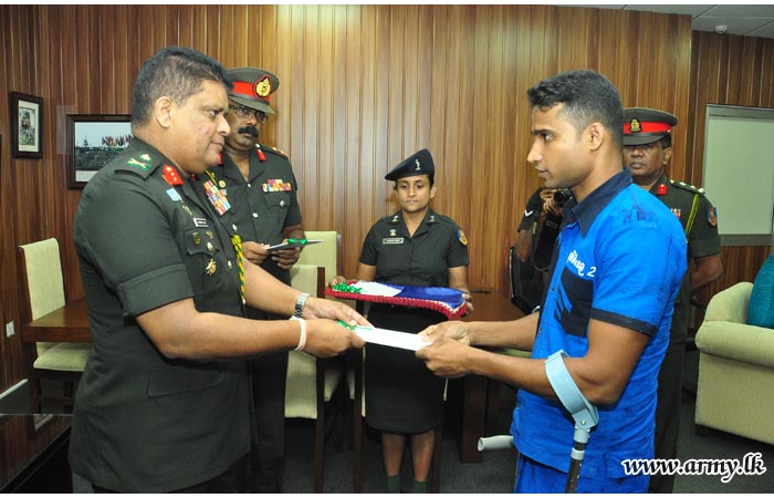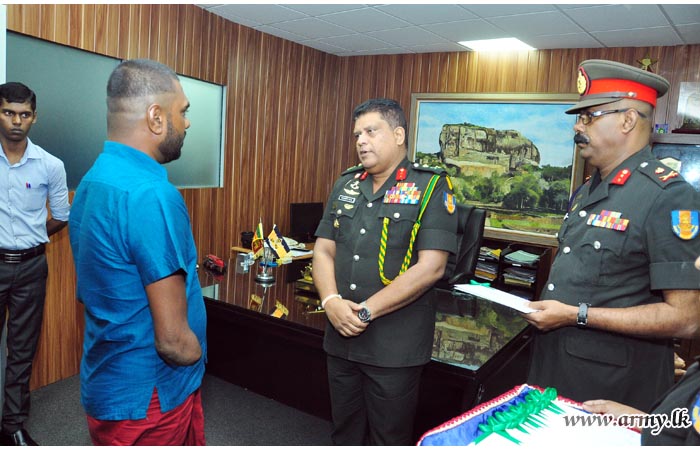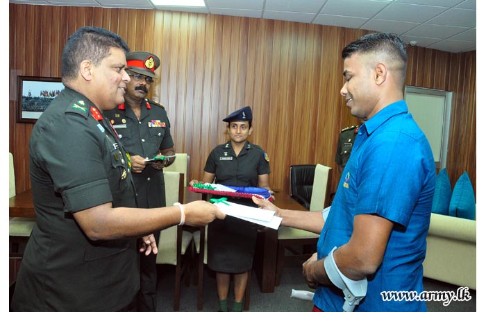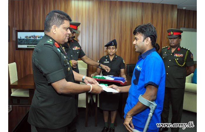 One more 15-member batch of battle-affected War Heroes of the Army, still under recuperation and rehabilitation at different Army wellness resorts under the Phase-2 of the Tour Programme, initiated earlier by the Commander of the Army, received their air tickets to go on pilgrimage to India on Tuesday (04) from Major General Shavendra Silva, Adjutant General of the Sri Lanka Army at the Adjutant General’s Office.