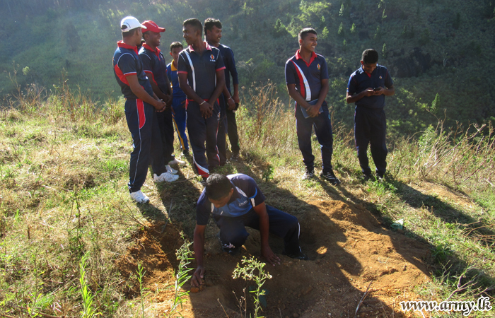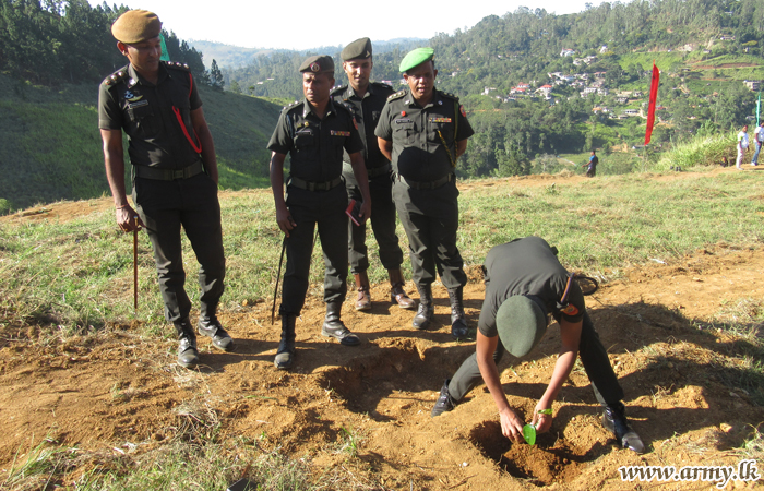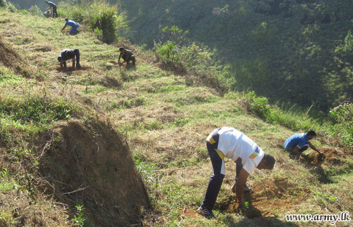 Planting Jack splings inside the Army Cantonment premises in Diyatalawa get underway on Friday (7) in Kahaththewela area in the Bandarawela Divisional Secretariat in parallel with the National Tree Planting Project.