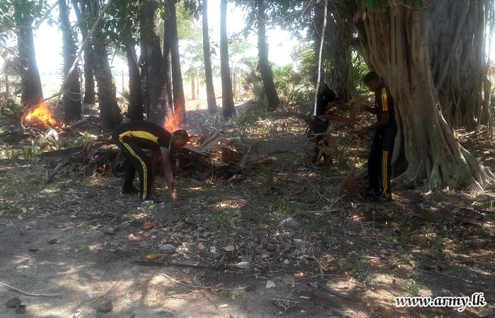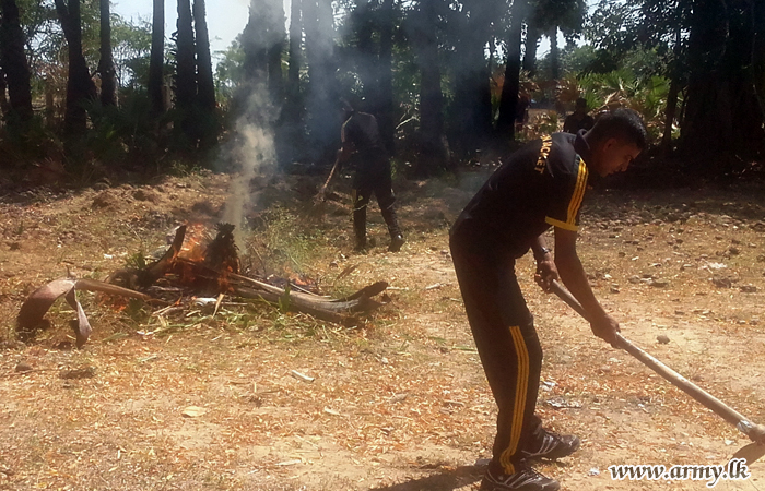 Troops and civilians weeded the hospital compound and rid of its garbage after collecting them to one spot.
