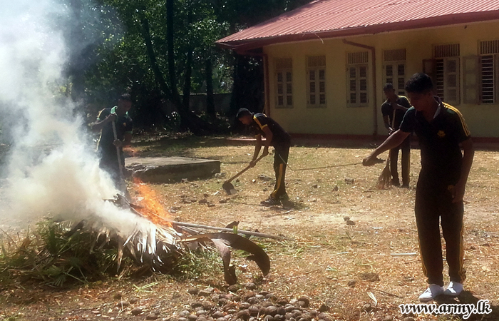 1 Sri Lanka Sinha Regiment (SLSR) troops of the 573 Brigade under command to the 57 Division in Kilinochchi joined hands with civilians in the area and cleaned-up the Kandawali rural hospital and its premises on Tuesday (11) as one more community-oriented project.