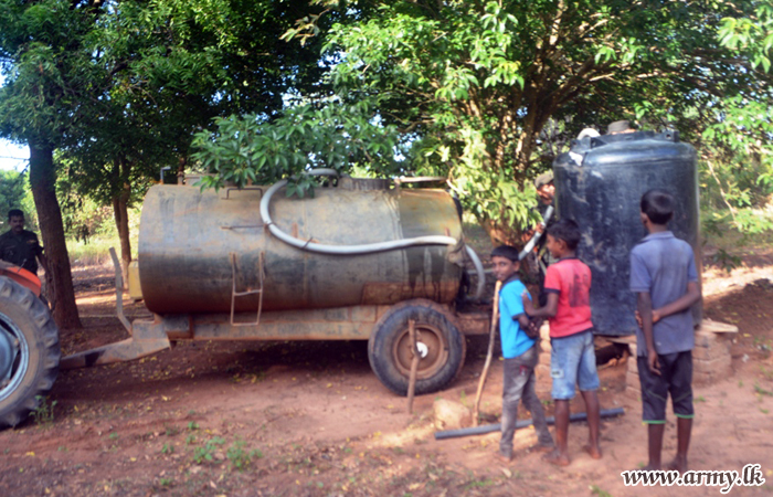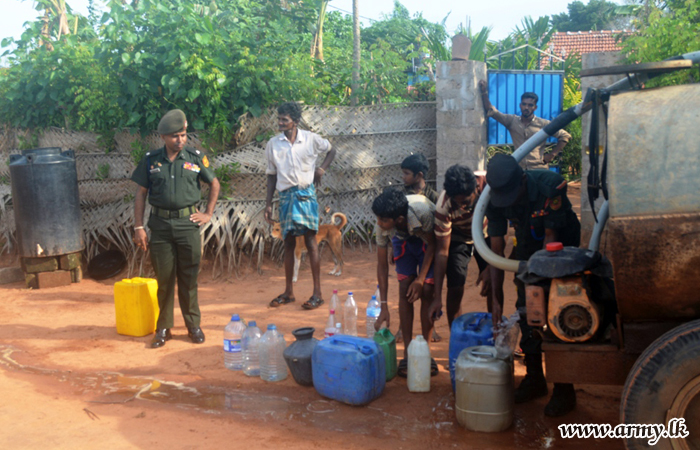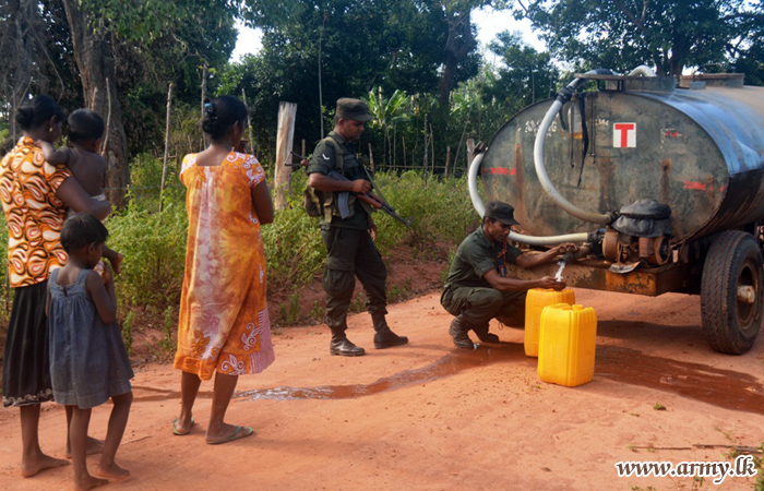 Villagers in worst-affected Vishvamadu area sought the assistance of the 57 Division Headquarters and the nearby 6 Sri Lanka Sinha Regiment (SLSR) and 14 Sri Lanka National Guards (SLNG) troops of the 572 Brigade since all water resources in those areas were fast getting dried.