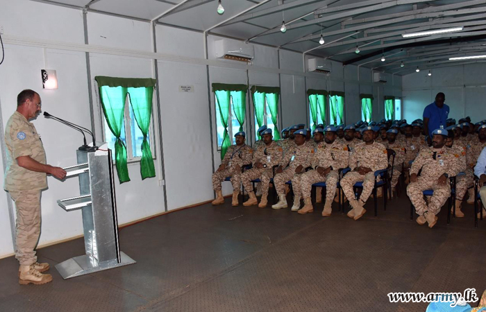 CCC troops, alert to the short notice, greeted him to a Guard Turnout before he was enlightened on specific CCC assignments and tasks through a presentation, made by Lieutenant Colonel Kalana Amunupura, Commanding Officer of the Sri Lankan CCC. Afterwards, the visiting Major General spoke to the CCC troops and thanked the troops.