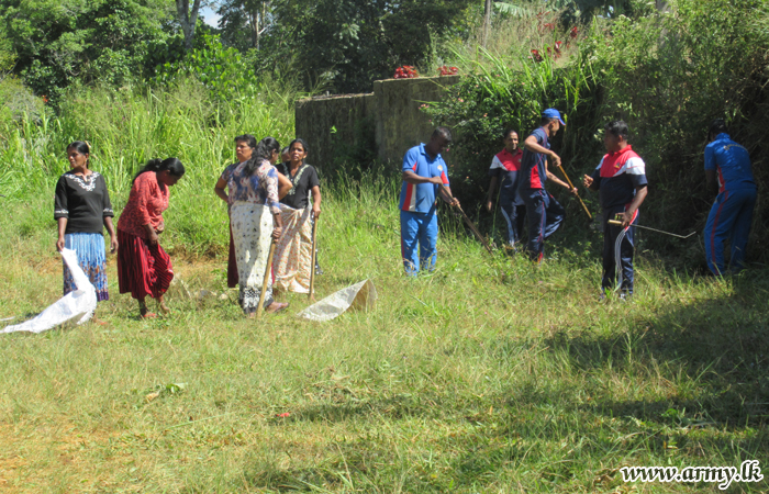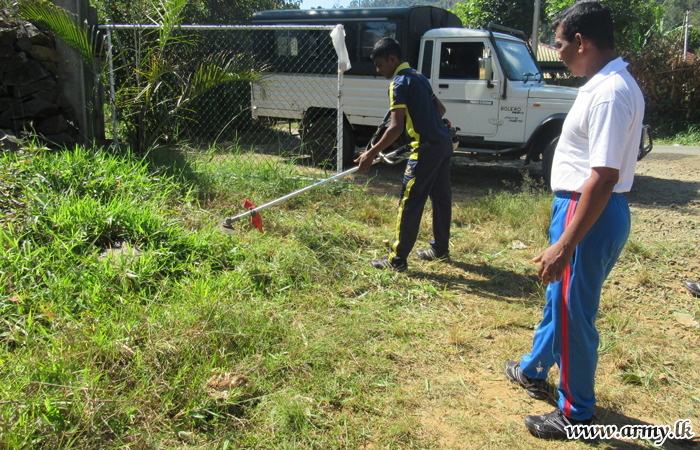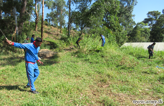 A group of 17 Army personnel including 1 Officer responded to a request of the Yahalabedda Vidyalaya in Haputale and assisted the cleaning of the school playground surroundings and the road that leads to the playground on Sunday (9).