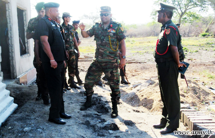 Major General Niyshshanka Ranawana, Commander Security Forces – Kilinochchi on Wednesday (12) visited the housing project under construction by Army troops with the patronage of the National Housing Development Authority (NHDA) at Thunukkai, Alankulum.