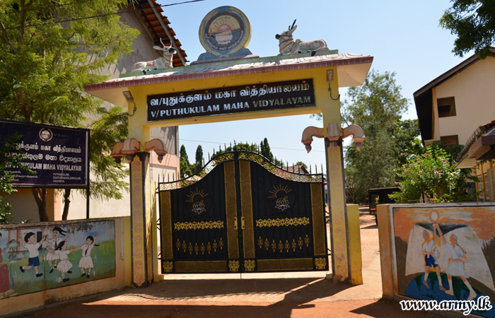 In response to a request of the Principal at Puthukulam Maha Vidyalaya, Mr S Subashgaran, the General Officer Commanding, 61 Division, Brigadier K.D.C.G.J Thilakarathne took the initiative in this regard and got the donation organized.