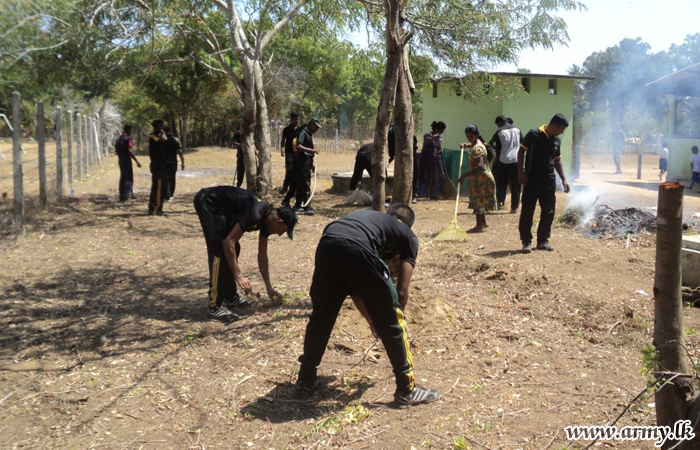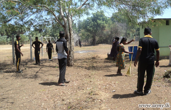 More than 30 troops, together with civilians in the area contributed to this Shramadana campaign and cleaned the school premises and its surroundings. |