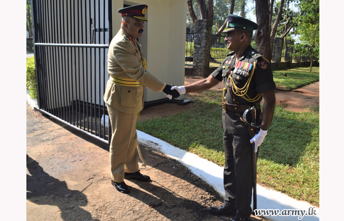 The newly-promoted Major General H. J Senevirathne, Commandant, Army Training School (ATS) at Maduruoya in conformity with military traditions was welcomed in a military salute on Thursday (13) when he arrived at the ATS after being promoted.