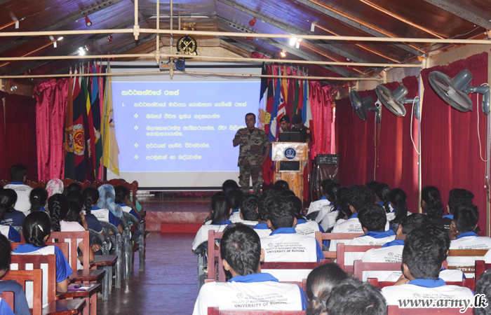Lieutenant General Mahesh Senanayake, Commander of the Army has directed the Security Force Headquarters-Central (SFHQ-Cen) to facilitate the students at the University of Ruhuna, who wanted to undergo a training in ‘Army Leadership’ during a workshop organized on the guidelines given by Major General Rukmal Dias Commander, Security Forces - Central (SF-Cen) at Diyatalawa.