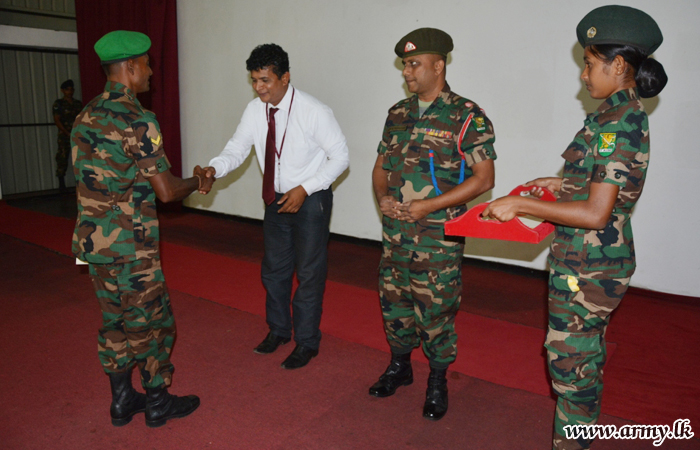 Major General Kumudu Perera, Commander, Security Forces - Wanni, graced the awarding ceremony as the Chief Guest. Deputy Director of National Vocational Training Centre in Anuradhapura Mr. Priyantha, Examination Evaluating Officer Ms S. S. S. P Kumuduni, Assistant Director of National Vocational Training Centre Vavuniya Mr. G. K. D. C Kumara, Training Officer of National Vocational Training Centre Vavuniya Mr. R. P. D. L Rajapaksha and Programme Officer, Ms T Rupika were present at the awarding occasion.
