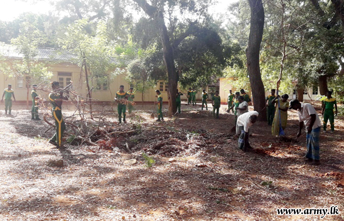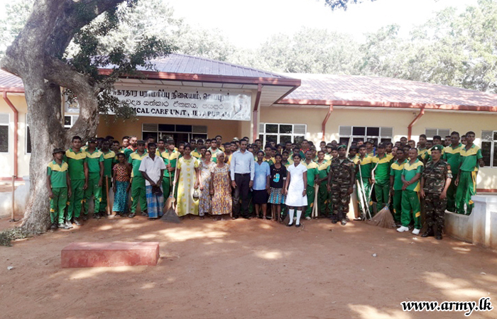 A group of 101 Army personnel of the 11 Gajaba Regiment (GR) of the 651 Brigade under the 65 Division of the Security Force Headquarters - Kilinochchi (SFHQ-KLN) joined hands with locals in Jayapuram area and cleaned up the Jayapuram primary medical care unit premises on Friday (14).