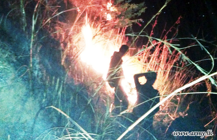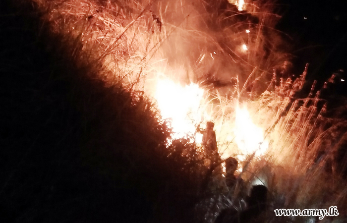 One Officer and sixteen Other Ranks of the Security Force Headquarters – Central (SFHQ-Cen) on the directions of the Commander Security Forces – Central, Major General Rukmal Diasrushed to Wadinahelaya area in the Kumbalwela Divisional Secretariat on Friday (21) and doused a fast spreading wild fire in the location.