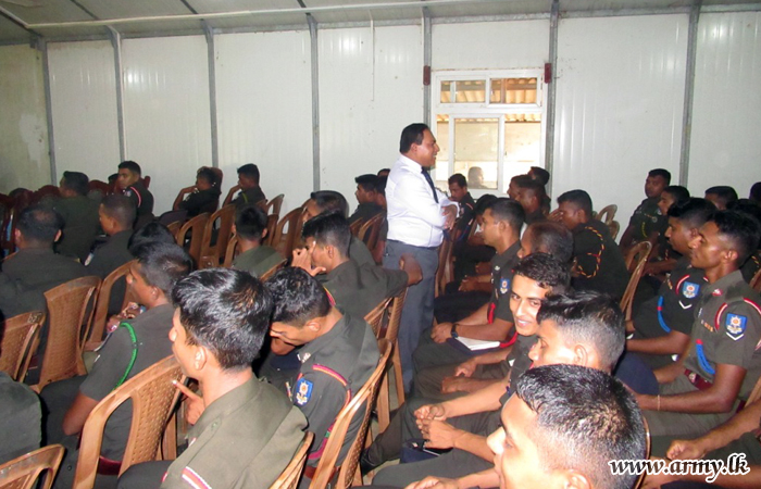 Those lectures were delivered to the troops who serve the SF HQ – MLT and the Forward Maintenance Area - Mullaitivu (FMA-MLT) on Tuesday (18) on the instruction of the Major General Dushyantha Rajaguru, Commander SF –MLT.