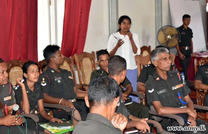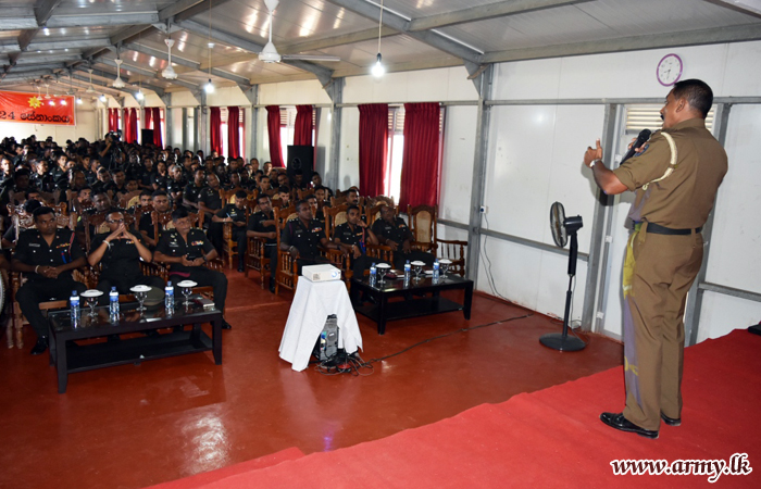 At the invitation of the GOC 24 Division, Assistant Superintendent of Police (ASP) Mr. Lucian Sooriyabandara, ASP - Mahaoya/ Ampara II, Psychiatrist, Dr. Shiranthi Wijesundara, Ampara General Hospital, Mr. M. M G B M Rashad, Counsellor National Dangerous Drugs Control Board - Ampara District, and Brigadier M.W.A.A Wijesuriya, Commander 112 Brigade delivered those lectures and conducted question-answer sessions.