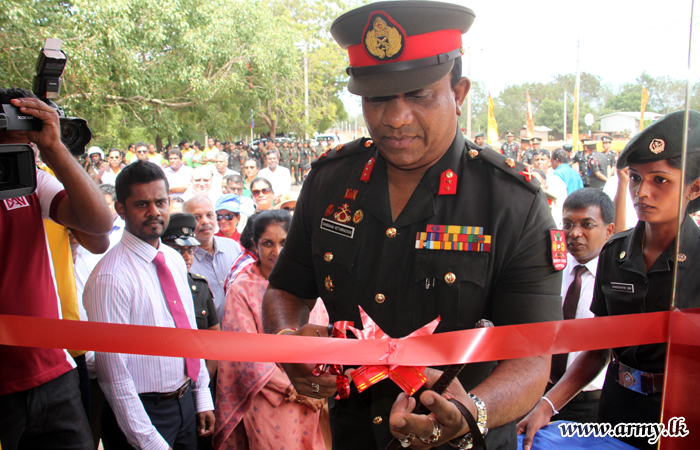 This kiosk for utility bill and bank payments was opened by the Commander Security Forces - Jaffna, Major General Darshana Hettiarrachchi on Sunday (23) in a simple ceremony, held at Palali.