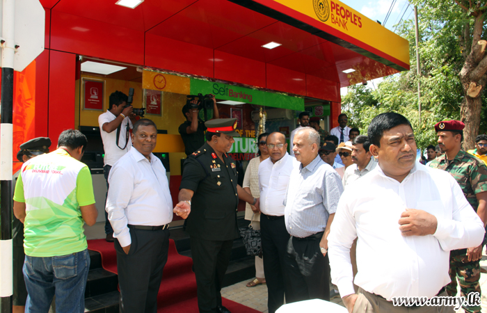 A new Self-Banking (ATM) facility complex was installed in Palali by People’s Bank at the request of the Commander Security Forces - Jaffna with a view to providing banking and financial transaction facilities to all military personnel serving the area and in camps in close proximity.