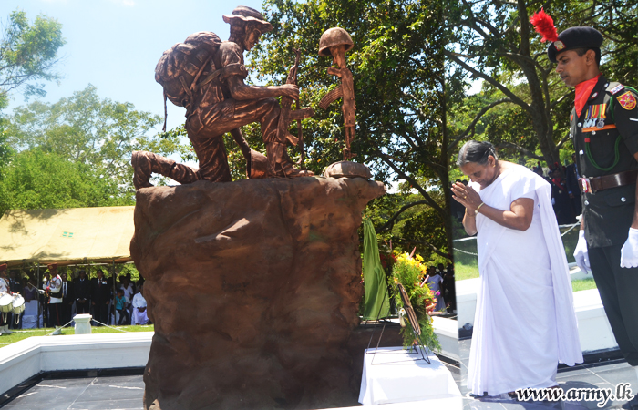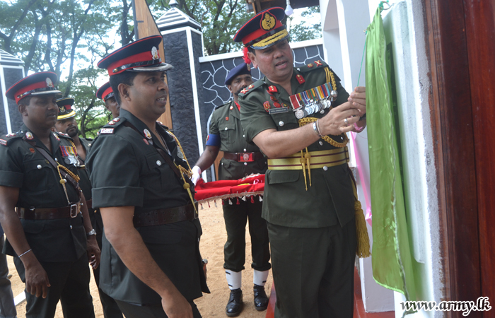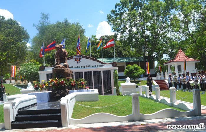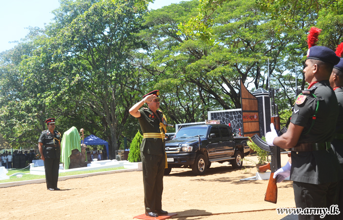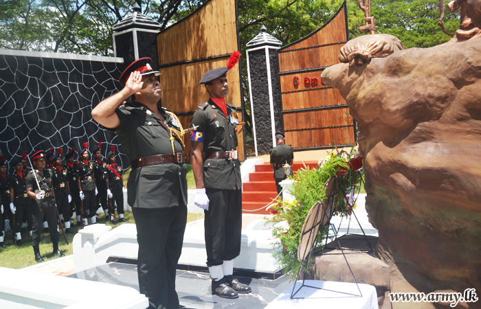 Major General T. S Bansajaya, Commandant, Infantry Training School at Minneriya at the invitation of 6 Gemunu Watch (GW) Commanding Officer Lieutenant Colonel J. M. D. N. C Jayamaha unveiled the 6 GW War Hero monument inside the Damminna camp in Maduruoya, Polonnaruwa on Sunday (23).