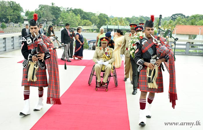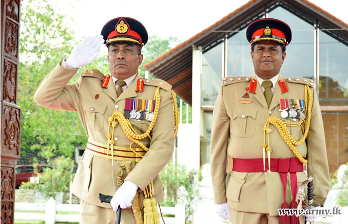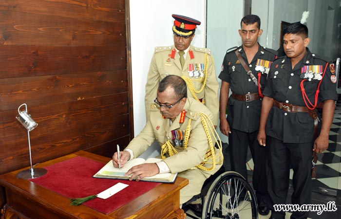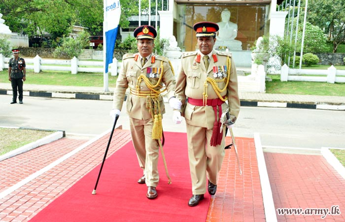 He was warmly welcomed by the Centre Commandant, Brigadier M.M Kithsiri on behalf of the Colonel of the Regiment, all Officers and Other Ranks of the SLLI soon after he arrived at the venue. In conformity with military traditions, a ceremonial parade saluted him after he reviewed the Guard of Honour in the company of the parade commander.