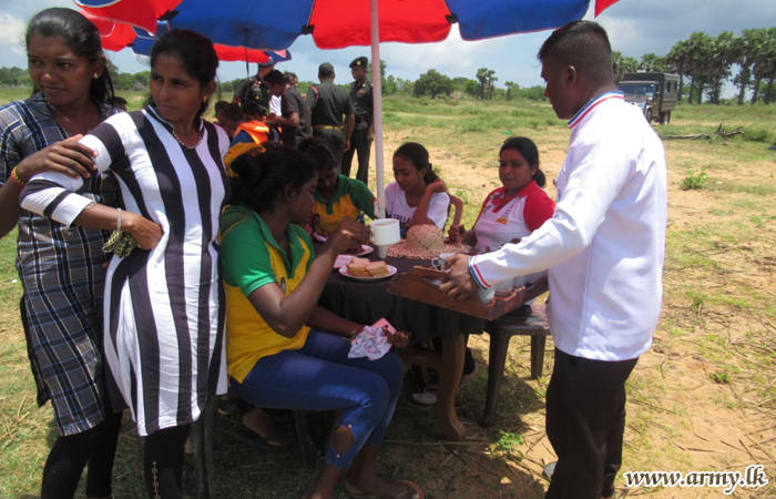 64 Division troops on the instructions of Brigadier Jayanath Jayaweera, General Officer Commanding, 64 Division provided refreshments, put up temporary parasols and chairs for the event. |