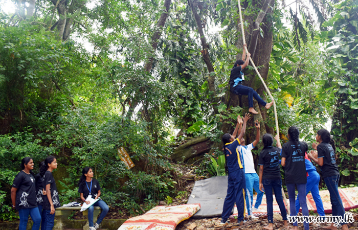 Army troops provided their adventurous features before the final leg of the day’s event at the college premises. 36 scout groups from island-wide schools and 26 Army personnel participated in the event. |
