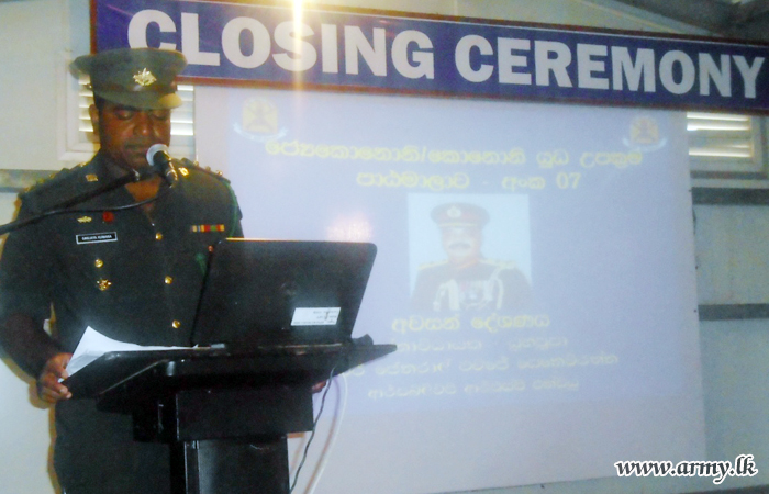The certificate awarding ceremony to Other Rankers who followed the Course on Tactics - No. 7 at Maduruoya Army Training School (ATS) concluded on Tuesday (2).