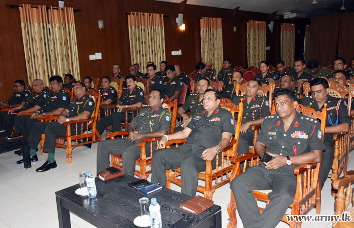 A professional at the request of the Security Force Headquarters - Mullaittivu (SFHQ-MLT) delivered a lecture on ‘Leadership & Management’ for Senior Officers serving Divisions, Brigades and all formations under command to the SFHQ-MLT on Monday (1).
