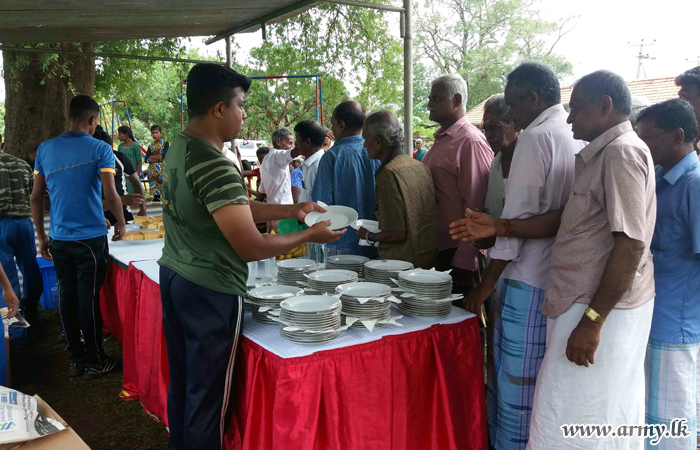 Organized by the Grama Seva official and a few other civilians, the event was supplied with temporary tents, chairs, other essentials and logistic support by the Army on the directions of Brigadier K.D.C.G.J Thilakaratne, General Officer Commanding, 61 Division.