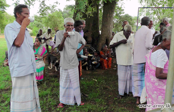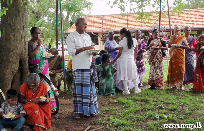 61 Division troops in Velankulam responding to a request made to them assisted civil organizers for conduct of a ceremony to felicitate senior citizens in the area to coincide with the World Elders’ Day at Kovilmotai Vidyalaya.