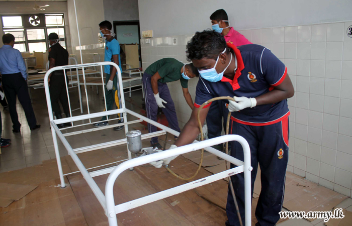 As one more project to coincide with the forthcoming 69th Army Anniversary, 11 Division troops of the Security Force Headquarters - Central (SFHQ-Cen) commanded by Major General T.J Nanayakkara, General Officer Commanding, 11 Division on the directions of Major General Rukmal Dias, Commander, Security Forces - Central carried out a two-day Shramadana campaign at Peradeniya Teaching Hospital during 5-6 October.