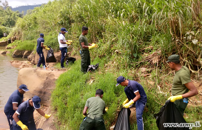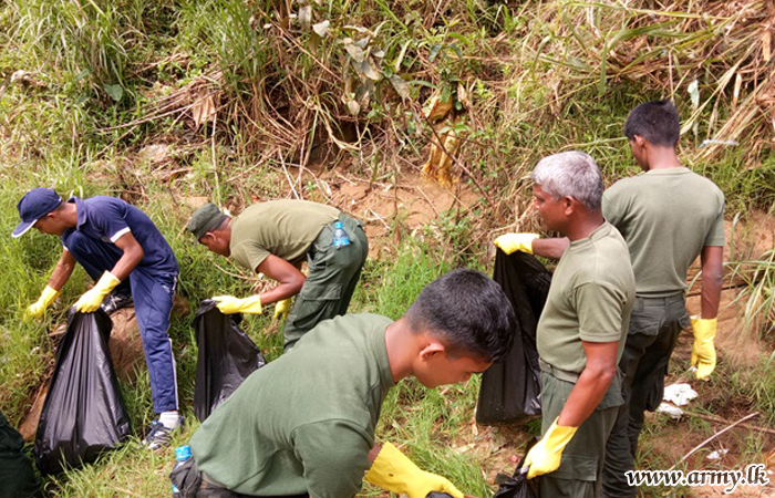 Troops of the 19 Sri Lanka National Guard (SLNG) hand in hand with other volunteers contributed to the project until the evening on the directions of the Commander, Security Forces - Central (SF-Cen) Major General Rukmal Dias.