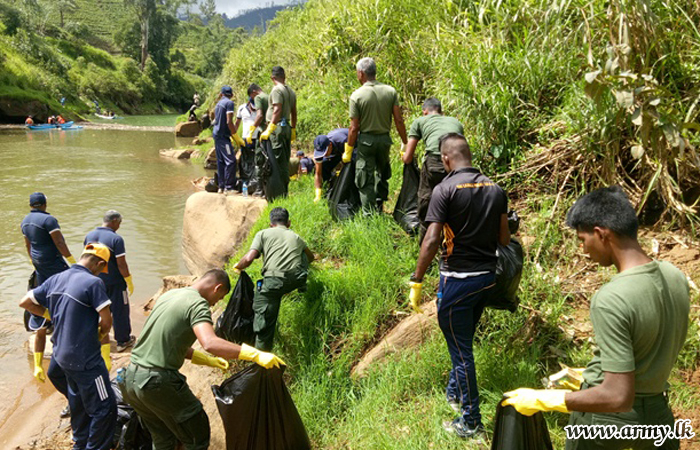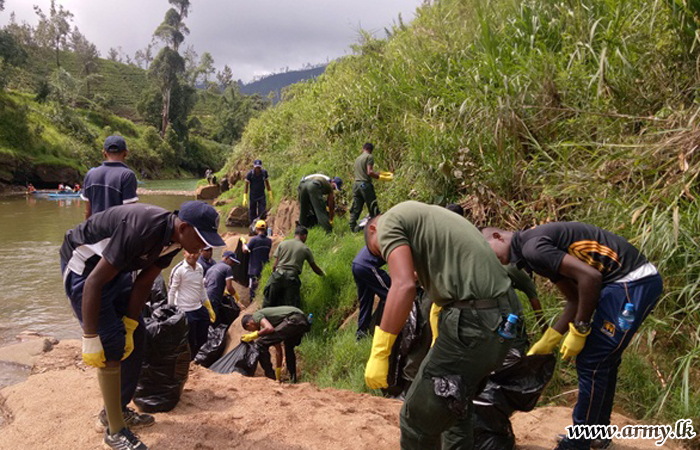 A group of 15 Army personnel of the Security Force Headquarters - Central (SFHQ-Cen) at the request of the Nuwaraeliya District Secretariat contributed to a Shramadana project conducted to clean solid waste in the Castlereigh Reservoir in Hatton on Saturday (6).