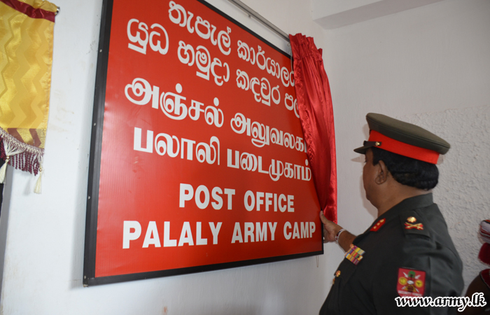 The new postal unit, set up in the Palaly Army Cantonment at the request of Major General Darshana Hettiarachchi, Commander, Security Forces - Jaffna (SF-J) was formally opened to the troops serving the peninsula during a simple ceremony on Saturday (6).