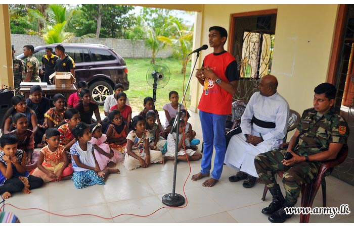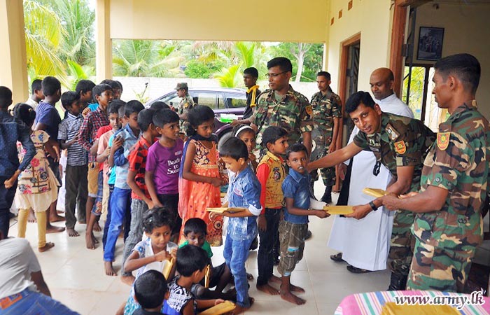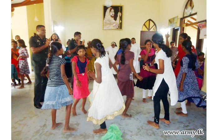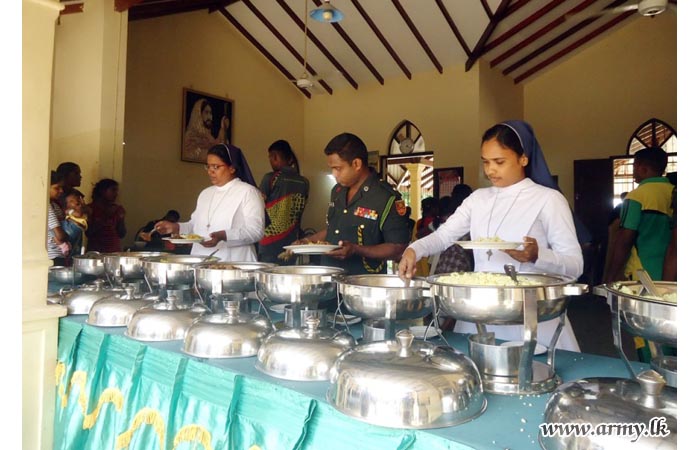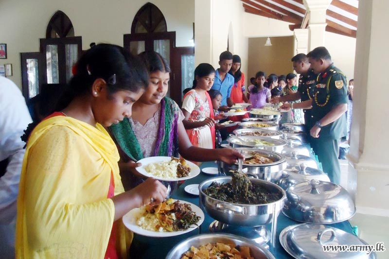 On the same day (7), a special lunch plus a musical programme was offered to 45 resident children at Good Shepherd Convent at Mankulam, patronized by the 574 Brigade Commander, Commanding Officer of 3 Gajaba Regiment and Officers and Other Rankers in the Unit. The event coincided with the 69th Army anniversary.