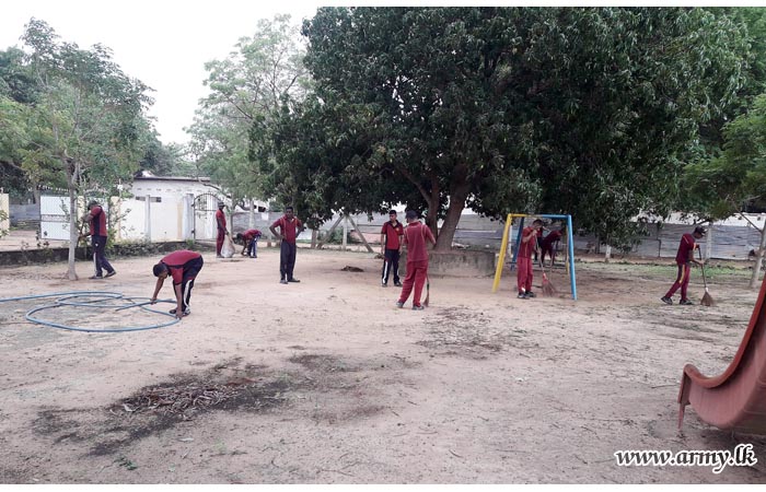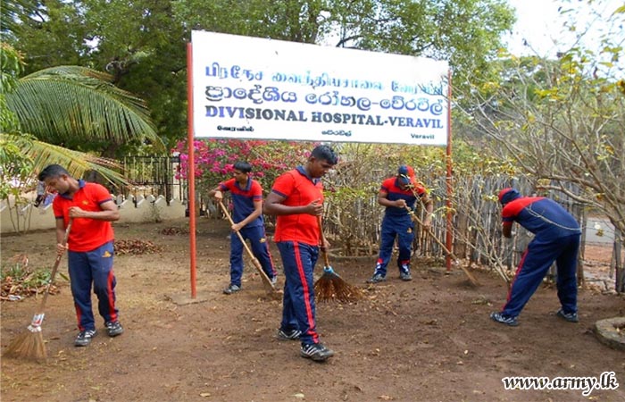 15 Sri Lanka Artillery and 2 (Volunteer) Sri Lanka National Guard troops of the 663 Brigade meanwhile cleaned hospital premises, Veravil School and the Elderly Care Home in Vannarikulam.