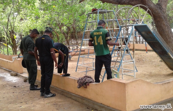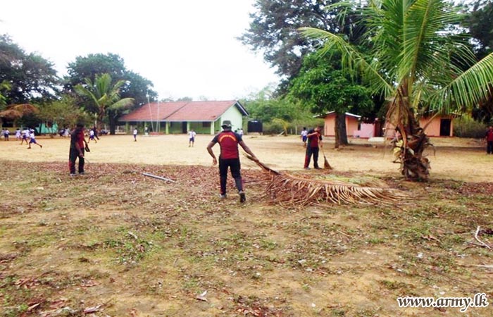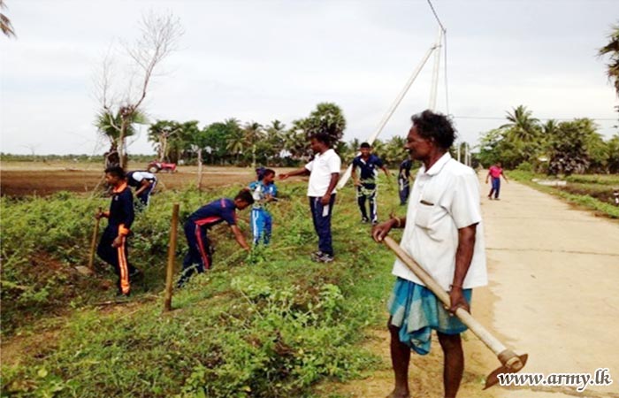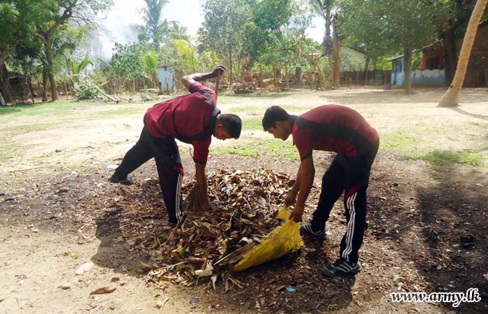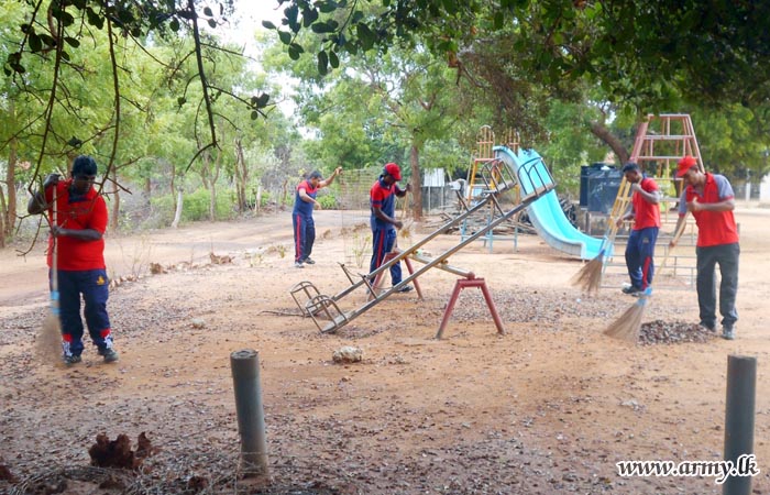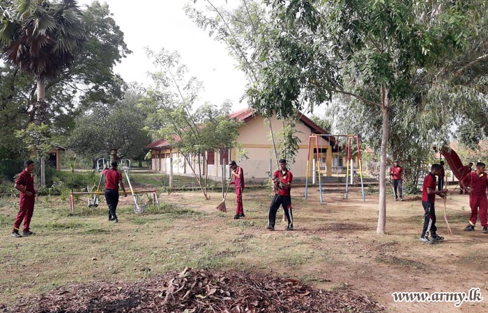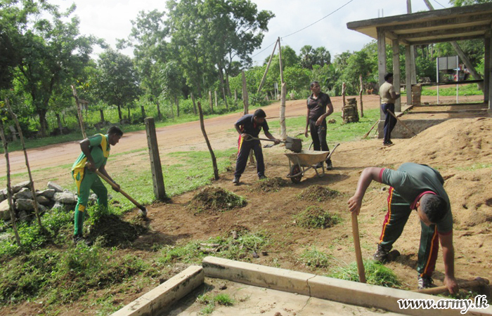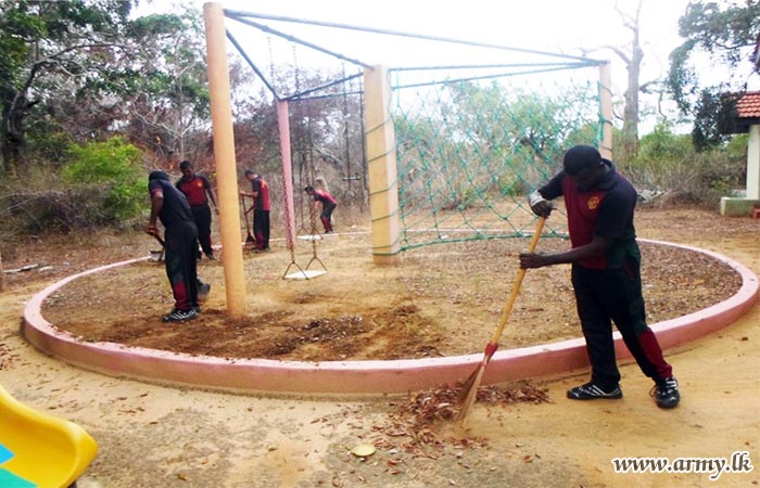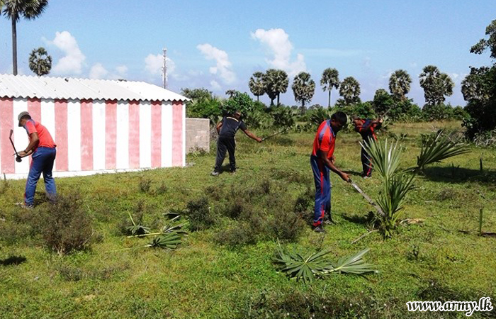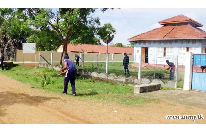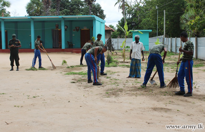 Thus, troops of the 15 (Volunteer) Sri Lanka Sinha Regiment organized a Shramadana campaign to clear the Suriya preschool premises in Waddakachchi.