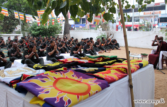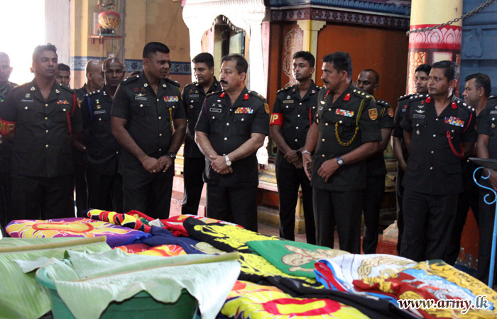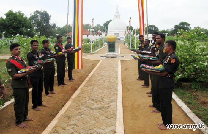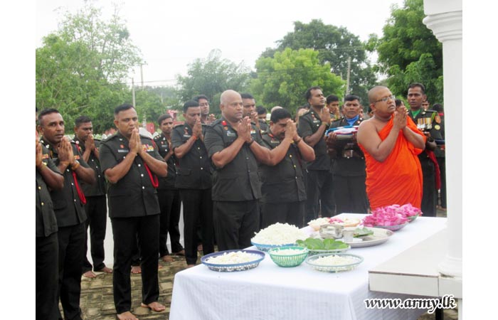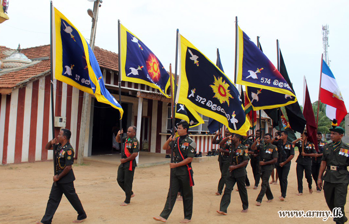 Similarly, troops of the 57 Division conducted a flag blessing ceremony and a Bodhi Pooja on account of the Army anniversary at Lumbini Viharaya and Kandasami Kovil in Kilinochchi with the participation of the GOC 57 Division together with Brigade Commanders, Commanding Officers, Officers and all Other Ranks on Tuesday (9).