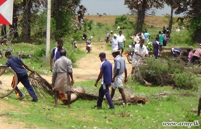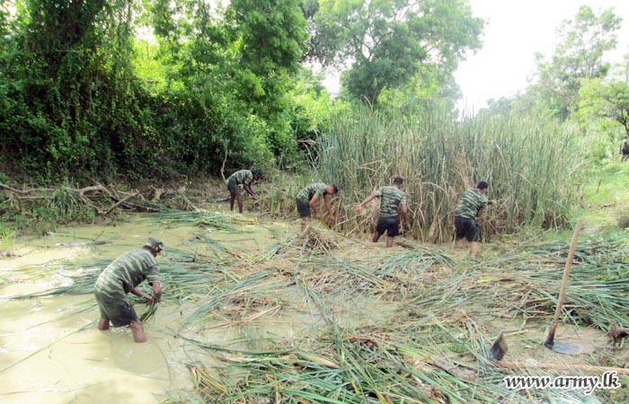 Troops of the 19 Sri Lanka Light Infantry under the 651 Brigade of the 65 Division meanwhile cleared the Irrigation canal in Kalvilamkulam. Similarly, 21 (Volunteer) Sri Lanka Light Infantry troops under the 653 Brigade cleaned Thunukkai school premises with the participation of all Senior Officers, Other Ranks and civilians also took part in the event.