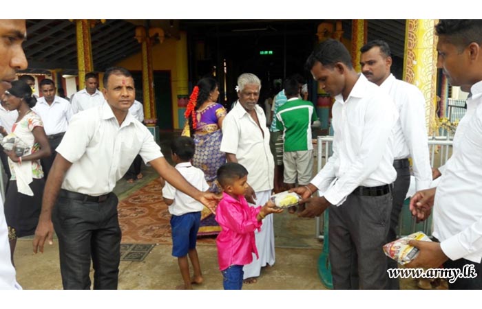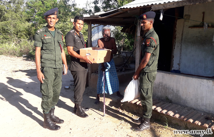 In the meantime, troops of the 9 Vijayabahu Infantry Regiment under the 571 Brigade donated a dry ration pack to a disabled family who lives in Malayalapuram, Kilinochchi area on Sunday (7) as another charity role.