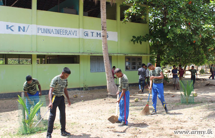 Meanwhile, 24 Vijayabahu Infantry Regiment and 5 (Volunteer) Mechanized Infantry Regiment troops of the 661 Brigade under the 66 Division launched a series of cleaning projects at Arasapurakulam Pre-school, Sunnaweli Vidyalaya at Pallikuda, Semmangoddu Vidyalaya, Thelikare Pre-school and Semmangoddu Catholic Church premises in the past few days on account of the anniversary.