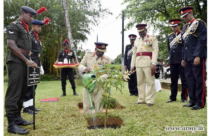 On arrival at the GW Headquarters, Major General Aruna Jayasekara was honoured in a Guard Turnout and afterwards in a Guard of Honour in accordance with military traditions. GW troops with the President’s Colours and the Regimental Colours awarded the salute. Later on, the new Colonel of the Regiment planted a sapling in the lakeside premises to mark the memorable occasion.