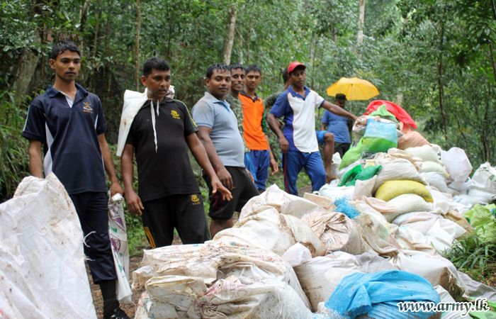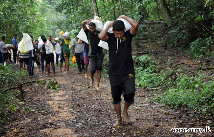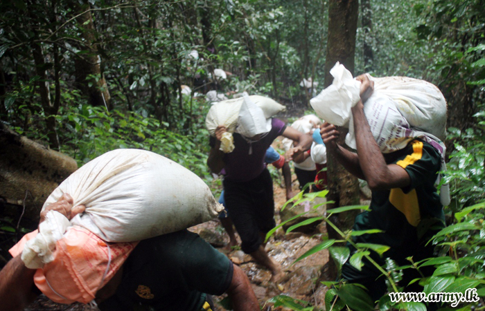 11 Division troops responding to a request, made to the Commander of the Army by the chief incumbent at Kandy Bolawatta Vajiraramaya for assistance carried raw materials for a construction site in the temple, which is situated on a high forest elevation on Hanthana mountains.