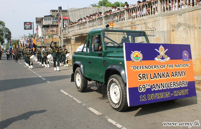 Meanwhile, 11 Division conducted a Flag March on Thursday (11) to coincide with the 69th Army Day. It marched from Mulgampola to the 2 (Volunteer) Sri Lanka Sinha Regiment (SLSR) Headquarters.