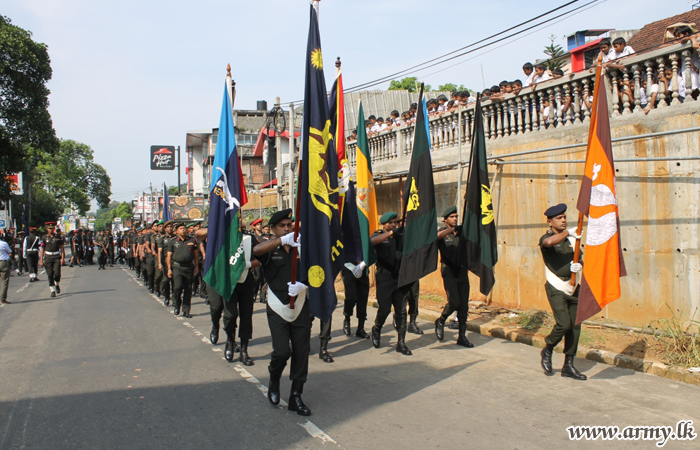 Meanwhile, 12 Division troops of the SFHQ-Cen conducted a Flag March from Hambantota town up to the Hambantota Hospital entrance on the Army Day. 15 Officers and 50 troops of the 121 Brigade, and the 122 Brigade also conducted separate Flag Marches in Kumbukkana town. The march with 93 Army personnel, began from Hambantota President’s College premises and ended at Debarawewa ground.