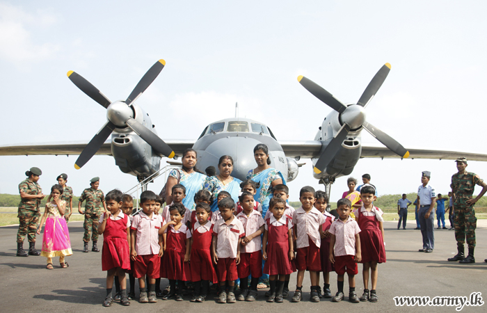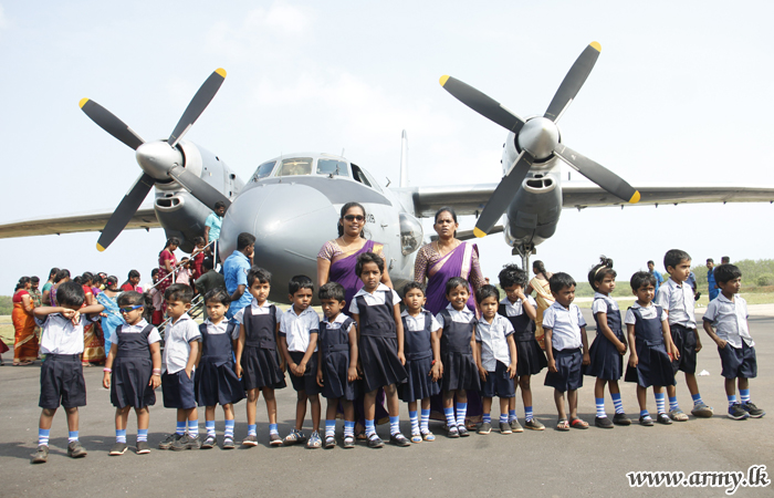 A group of pre-school students were facilitated to visit the Palali Airport on Friday (12) by the Commander, Security Forces - Jaffna, Major General Darshana Hettiarrachchi. The gesture was aimed at improving harmony and good relations among communities who are living in the Northern Peninsula.