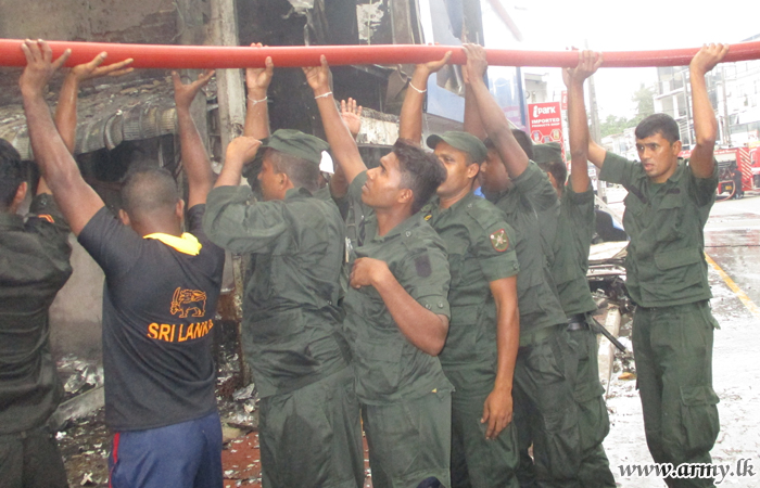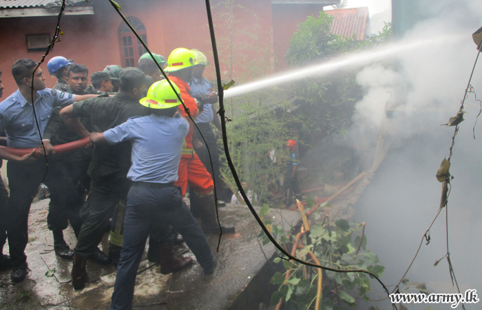 On the instructions of Major General S. D. T Liyanage, Commander, Security Forces - West, troops assisted to douse the fire by providing the fire engine available at the new construction site at Tri-Forces Headquarters, Battaramulla.