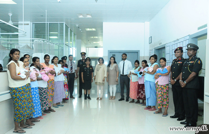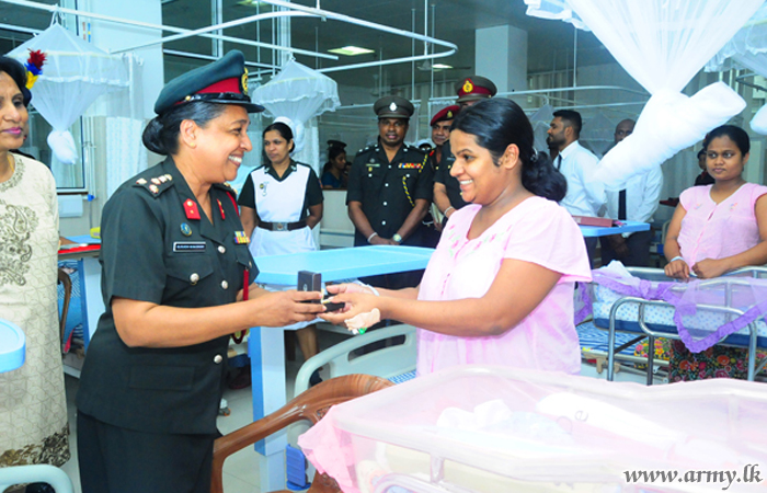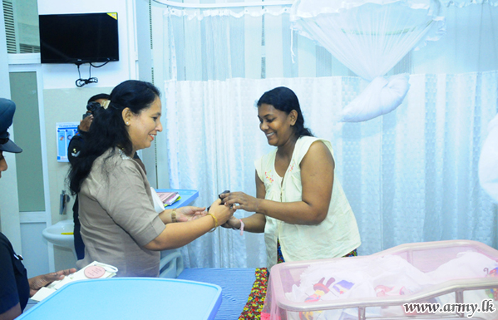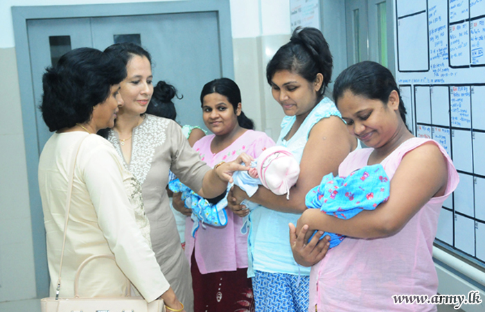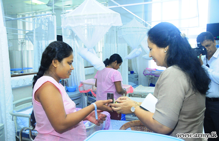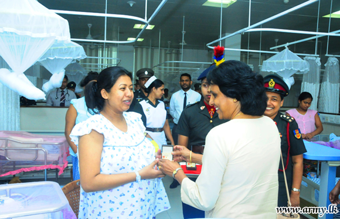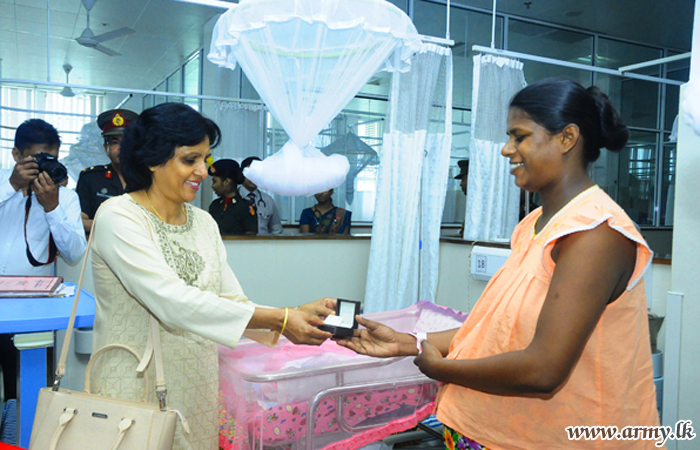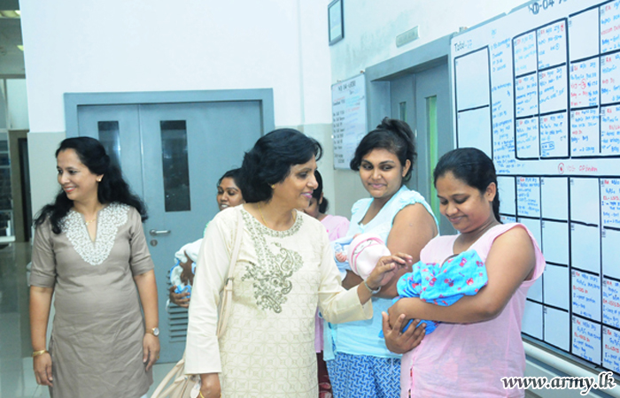 To coincide with the Army Day, Mrs Chandirka Senanayake, President, Army Seva Vanitha Unit (ASVU) at the invitation of the Directorate of Welfare, in what could be described as a gesture of motherly care, gifted the infants born at the Colombo Army Hospital on the Army Day (10 Oct) with gold jewelleries.