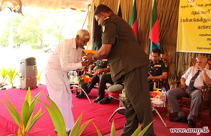 This gesture of goodwill and reconciliation was suggested by the General Officer Commanding, 61 Division, Brigadier K.D.C.G.J Thilakarathne, to be in line with the concept of the Commander, Security Forces - Wanni, Major General Kumudu Perera who encouraged all Divisions and Brigades to initiate such community-friendly moves to coincide with the ‘Api Wawamu-Rata Nagamu’ national project.