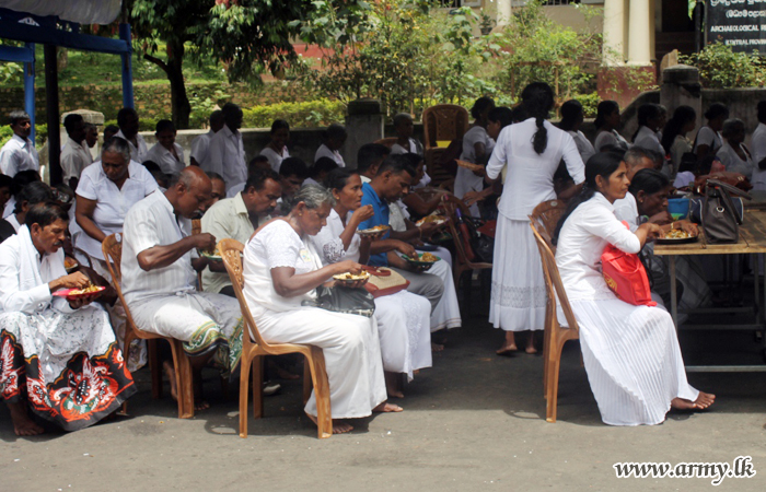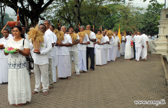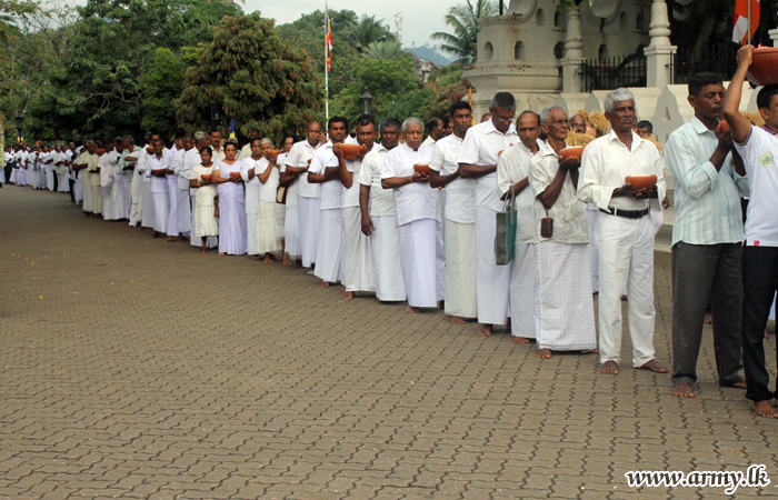Army troops serving Battalions, Training Schools and Units in the 111 Brigade of the 11 Division of the Security Force Headquarters - Central (SFHQ-Cen) on the directions of the Major General Rukmal Dias, Commander, Security Forces - Central recently provided cooked meals and facilitated the conduct of ‘Aluth Sahal Mangallaya’ (feast for new rice harvest) at the sacred Sri Dalada Maligawa in Kandy.